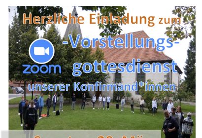 Der Vorstellungsgottesdienst am kommenden Sonntag den 20. März findet um 10 Uhr via Zoom statt.
