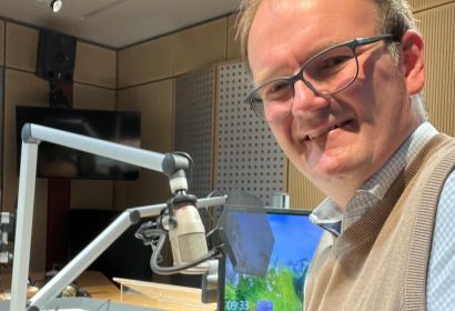 Pastor Rainer Müller-Jödicke sitzt im Studio des Landesfunkhauses.