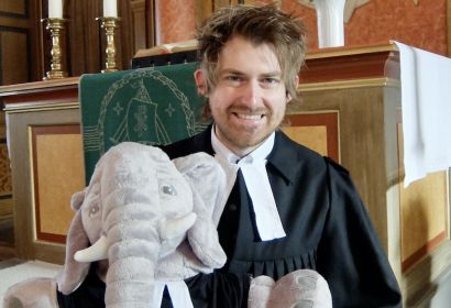 Vikar Hendrik Hundertmark predigt gern zusammen mit seinem Elefanten.