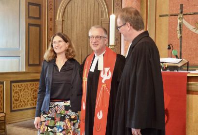 Dank für vielfältiges Engagement in vielen Ämtern: Superintendent Dirk Jonas mit Wiebke und Rainer Müller-Jödicke. Foto: Andrea Hesse